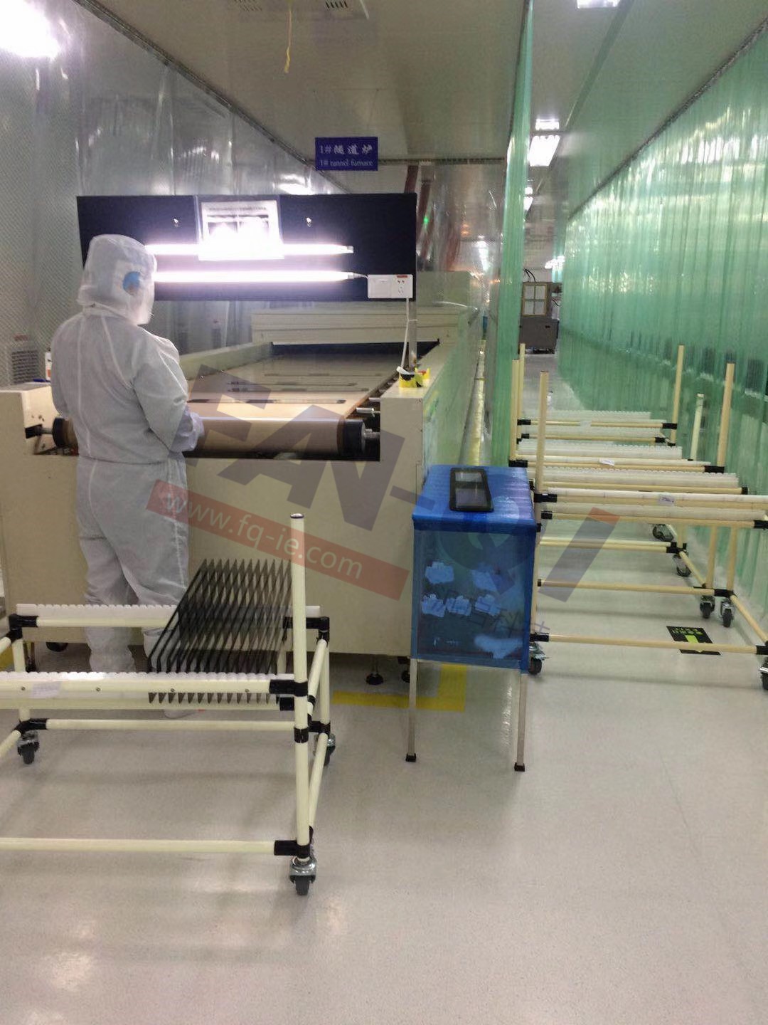 烘干線參考尺寸:內尺寸W600*D500*560mm*2箱 外尺寸W1450*D760*H1860mm溫度:常溫+20℃~+200℃,常用溫度低于150℃安裝耐高溫高效過濾器材質:內箱為不銹鋼板SUS304鏡面板,外箱為鋼板烤漆。